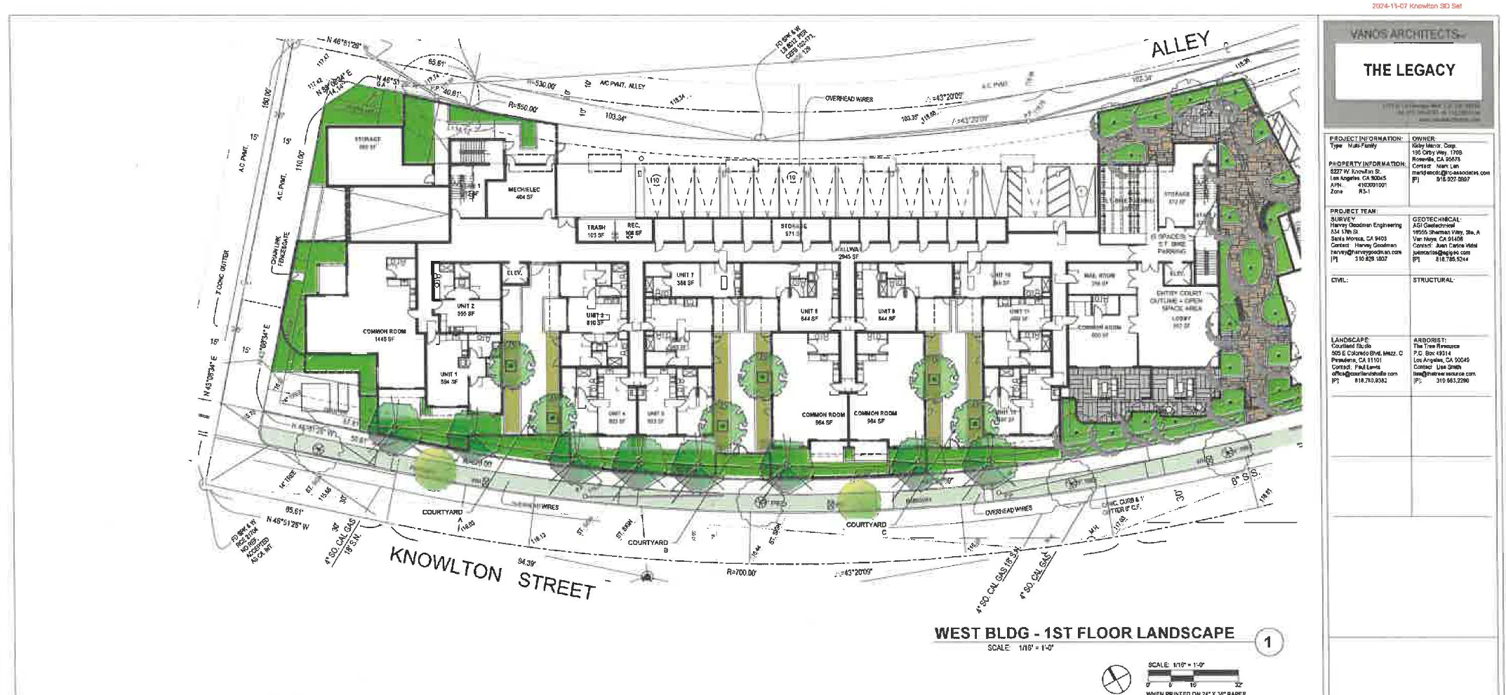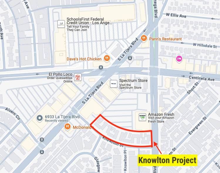 - Frontage: 610′ on Knowlton and alley to the north. 100 sq ft along La Cienega. 110′ on alley to the west.