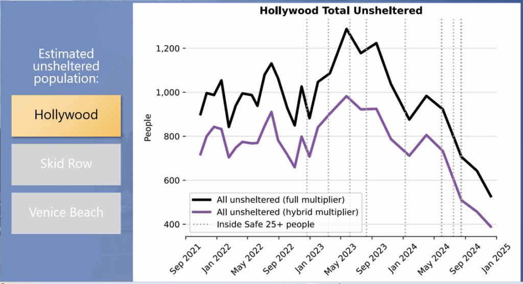 Hollywood: overall homelessness is down about 50%.